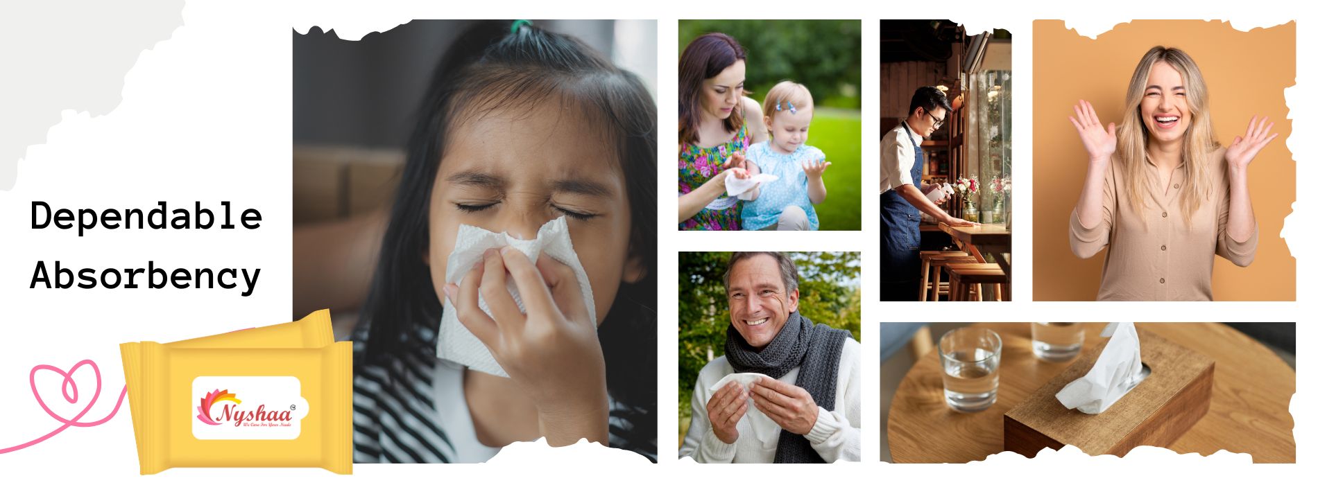 Nyshaa Global is a leading manufacturer of high-quality tissue and hygiene products as well as household products, dedicated to enhancing your daily comfort and well-being. Our product range includes regular tissue paper, facial box tissues, and printed tissues, along with a variety of hygiene essentials such as refreshing wet wipes, pet wipes, and premium toilet rolls. We pride ourselves on our commitment to quality and sustainability, ensuring our products are not only effective but also environmentally friendly. Choose Nyshaa Global for products that combine superior performance with the highest standards of hygiene.